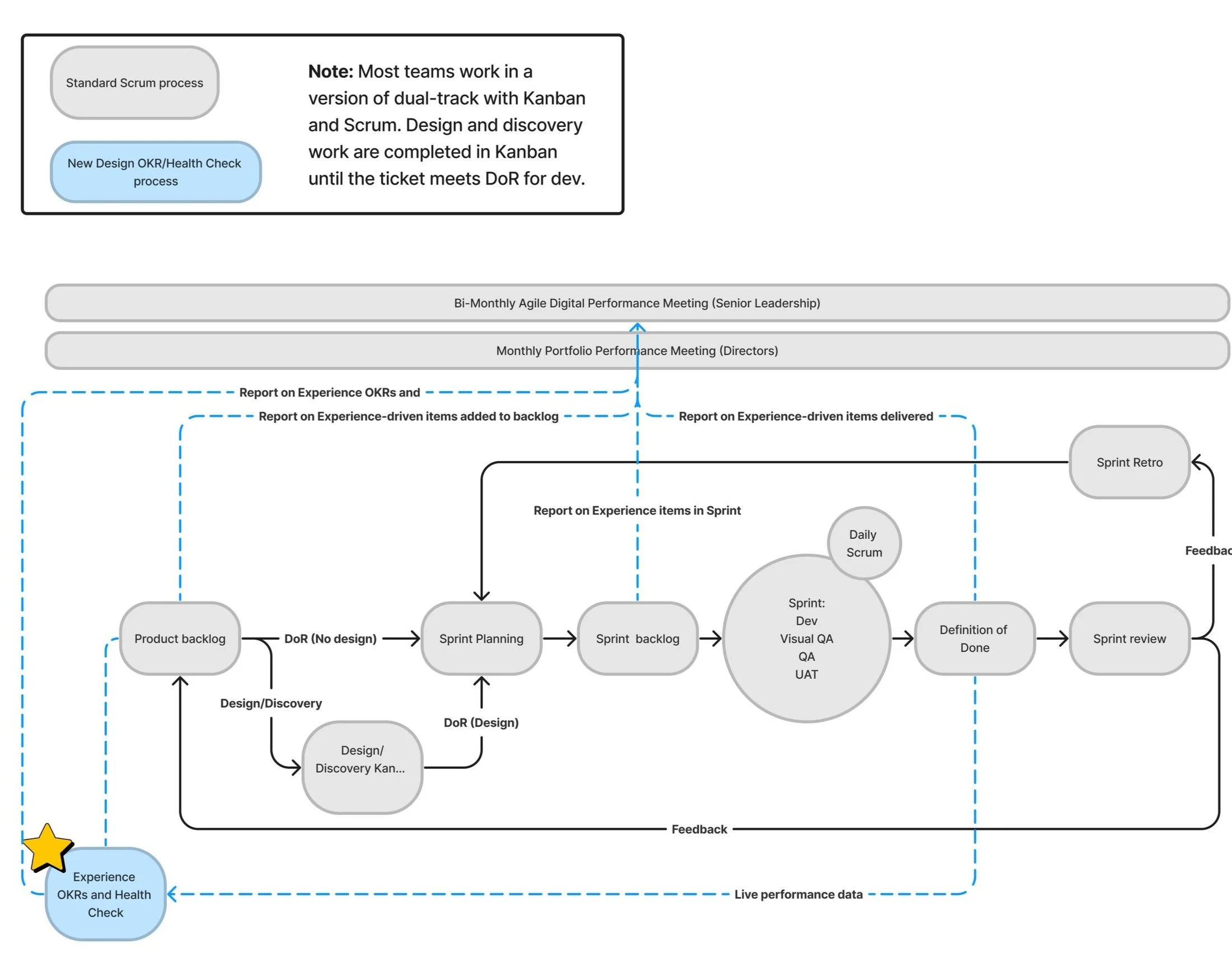 Piloted experience metrics and ‘Health Check Workshops’ with 20+ participants from design, digital product, marketing, tech, legal and banking products.
